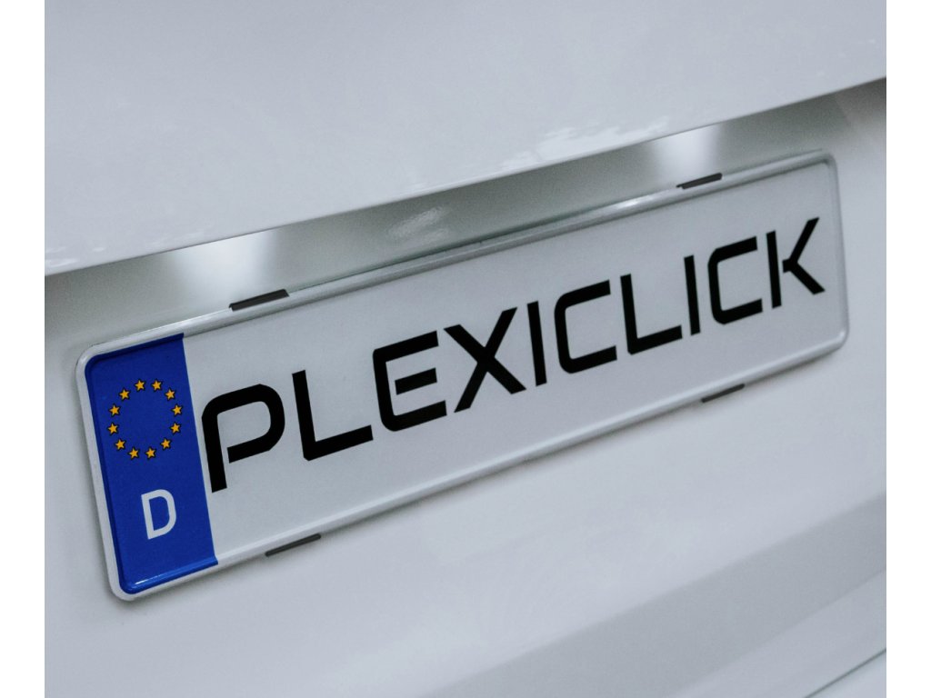 Vadí vám mohutné a nevzhledné rámečky registračních značek s reklamou? Plexiclick nabízí elegantní a technicky propracované řešení v podobě malých, ale extrémně pevných plastových držáků. Registrační značka se jednoduše nacvakne – výrazné „kliknutí“ potvrzuje správné a bezpečné uchycení. Značku lze kdykoliv snadno demontovat bez poškození.